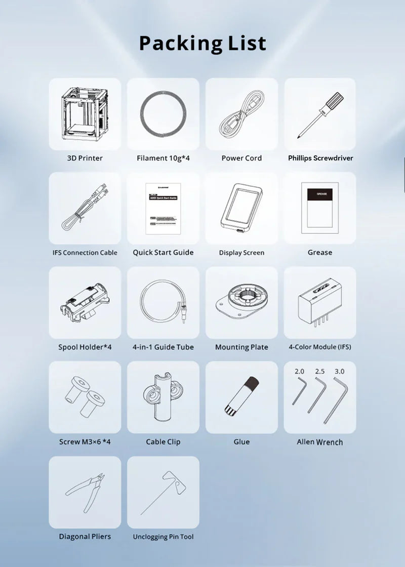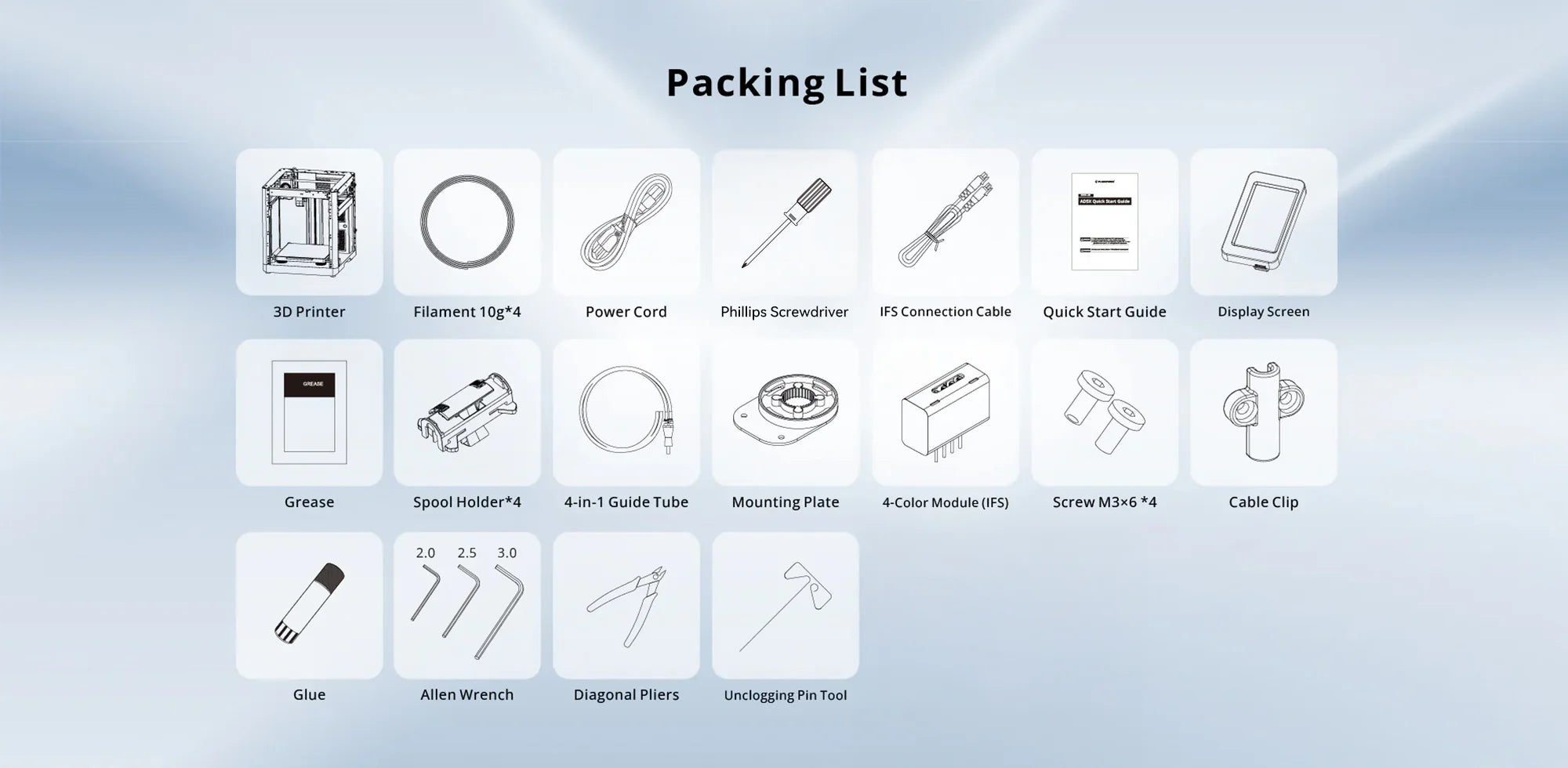 - Upgraded Extruder Cutter: Enables automatic filament feeding and retraction, supporting a 4-color filament change module (IFS module) for multi-color printing.